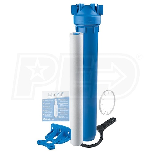 Atlas Filtri® - DP Mono Blue Filter Housing Kit - Bracket & Wrench - 5 Micron Sediment Cartridge with ScaleArmor™ - 2.5" x 20" - 3/4" NPT