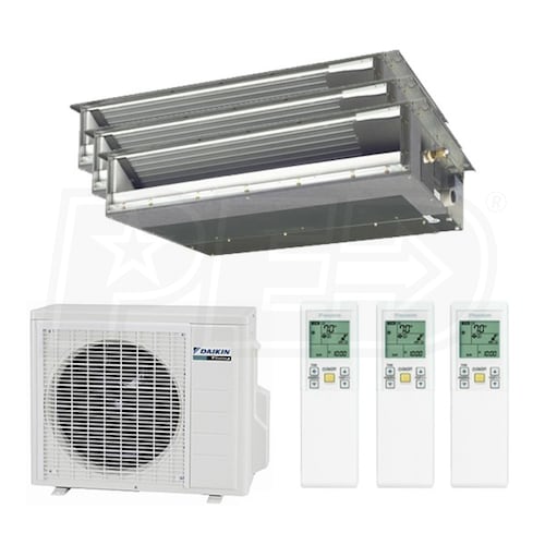 Daikin has firmly established themselves as a world leader in heating and cooling equipment manufacturing, and their ductless systems are no exception. This is a three zone mini split system designed to provide controlled comfort to any zone in your home. The powerful outdoor unit is engineered to the highest energy efficiency expectations, guaranteeing a long service life of cost-effective performance. The concealed duct indoor units blend in seamlessly with surrounding decor, keeping your home comfortable while not drawing attention to themselves. Advanced filtration technology cleans your home's air at the same time it is conditioned, allowing you and your family to breathe easy without fear of lingering pollutants. Multiple operating speeds and inverter technology give this multi zone split system the ability to provide efficient comfort to any home imaginable.