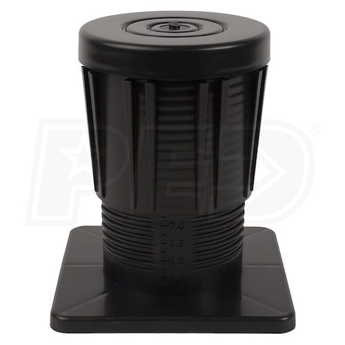 The Diversitech Adjustable Equipment Riser in black can change height to securely hold equipment at the proper level. With a large center barrel that can be twisted from a starting height of 5 inch to a maximum of 8 inch, and a separate top cap that allows for raising or lowering the riser even with equipment on it, adjustments can be easily made as needed. The riser also includes convenient height markings for reference.