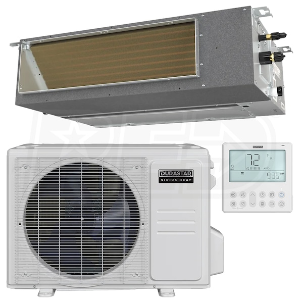 Durastar Sirius Heat™ HIgh Static Concealed Duct Mini Split Heat Pump System - Single-Zone - 12k BTU - 20.50 SEER2 - R-454B