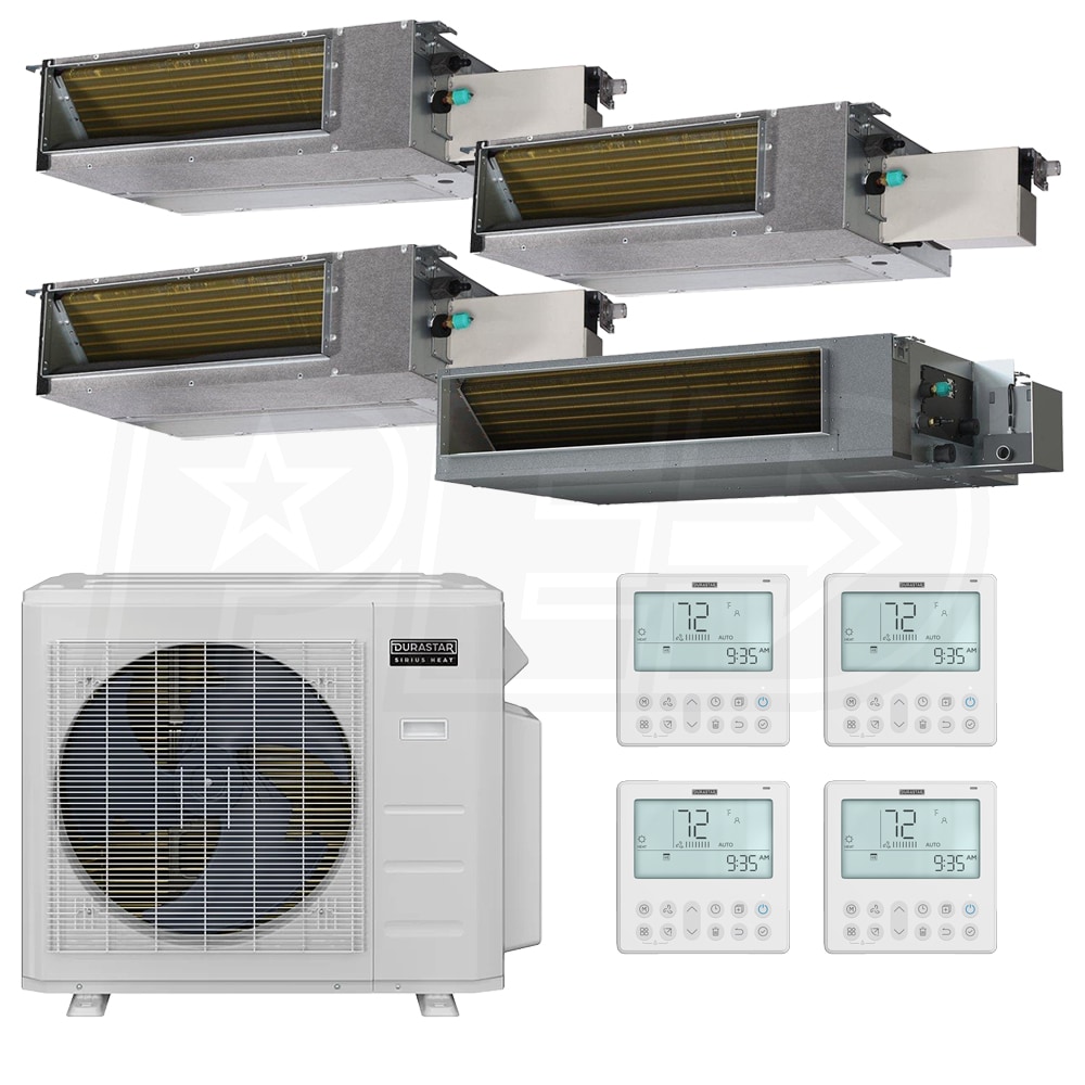 Durastar Sirius Heat™ Concealed Duct Mini Split Heat Pump System - 4-Zone - 28k BTU Outdoor - 6k+6k+6k+18k Indoor - 19.0 SEER2 - R-454B