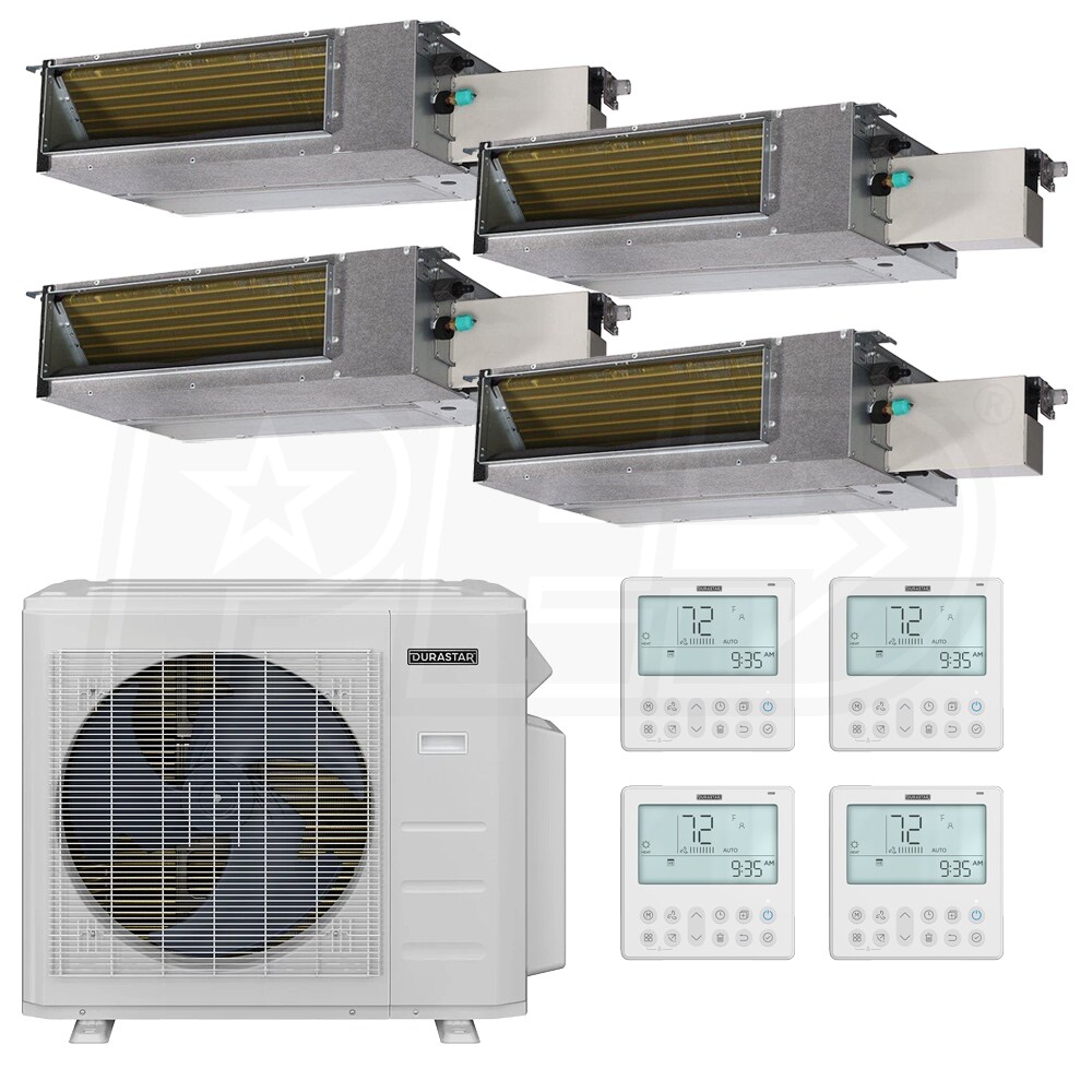 Durastar Concealed Duct Mini Split Heat Pump System - 4-Zone - 28k BTU Outdoor - 6k+6k+6k+12k Indoor - 21.0 SEER2 - R-454B