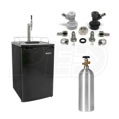 Enjoy the satisfaction of serving your own home brew with the Edgestar KC2000HMBREW. The Edgestar KC2000BL kegerator is compact and efficient, able to hold a sixth barrel or Cornelius keg as well as a CO2 tank. The free standing kegerator has a reversible door, giving you installation location options. The included home brew conversion kit allows you to dispense your own brew, so you can have the best of both worlds. The ultra low temperature kegerator keeps your beverage at the perfect ice cold temperature.