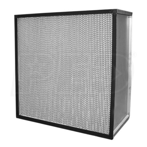 The Flanders Alpha Cell Series 0-007-C-11-00-IU-12-00-GG-F 99.97% Separator Style HEPA Filter provides HEPA efficiency for a variety of applications. This 24" x 24" x 11-1/2" filter is constructed of 99.97% efficient media at 0.3 micrometers. The model 0-007-C-11-00-IU-12-00-GG-F filter is equipped with a particle board box frame and is rated for up to 1,000 CFM airflow applications. Alpha Cell filters protect against particulate contamination, bacteria and viruses, and other dangerous materials. They are commonly installed in areas needing high levels of filtration including hospitals, biomedical, pharmaceutical, biotechnology, universities, laboratories, food processing, photo processing, and industrial applications.