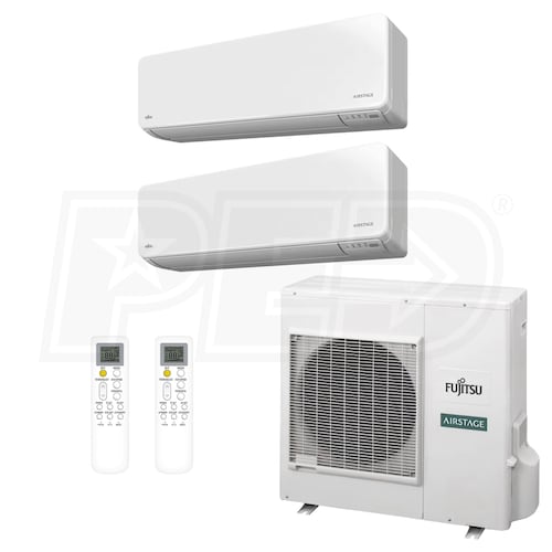 Fujitsu Wall Mounted 2-Zone XLTH System - 18,000 BTU Outdoor - 7k + 7k Indoor - 21.5 SEER2