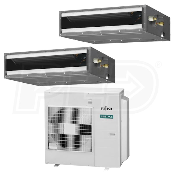 Fujitsu Concealed Duct 2-Zone System - 36,000 BTU Outdoor - 12k + 24k Indoor - 18.0 SEER2
