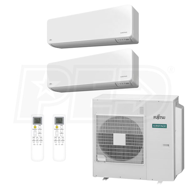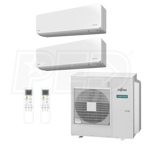 Fujitsu Wall Mount 2-Zone System - 36,000 BTU Outdoor - 18k + 18k Indoor - 20.5 SEER2