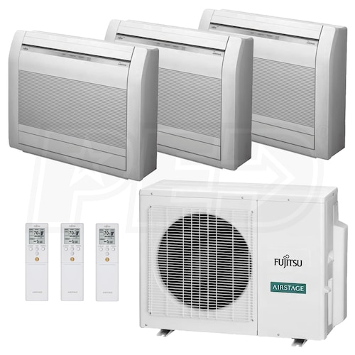 Fujitsu Floor Standing 3-Zone System - 36,000 BTU Outdoor - 9k + 9k + 12k Indoor - 19.0 SEER2