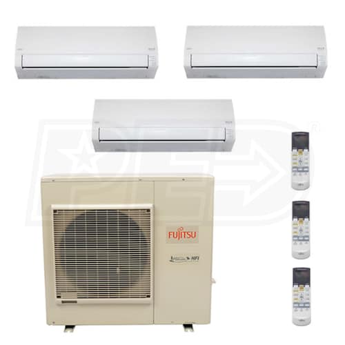 Fujitsu Wall Mounted 3-Zone System - 36,000 BTU Outdoor - 7k + 9k + 12k Indoor - 18.0 SEER