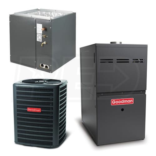 Goodman - 3 Ton Cooling - 80,000 BTU/Hr Heating - Air Conditioner & Furnace Package - 14 SEER - 80% AFUE - Upflow