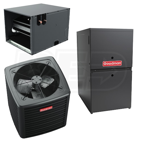 Goodman - 2.5 Ton Cooling - 80,000 BTU/Hr Heating - Air Conditioner + Variable Speed Furnace System - 15.2 SEER2 - 80% AFUE - Horizontal - R-32