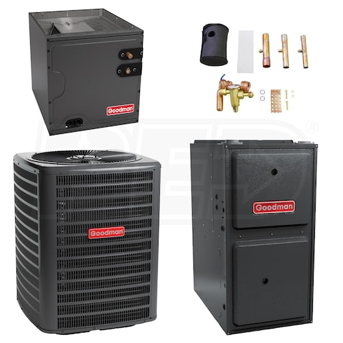 Goodman - 2.0 Ton Cooling - 60k BTU/Hr Heating - Air Conditioner + Multi Speed Furnace Kit - 15.0 SEER - 92% AFUE - Upflow