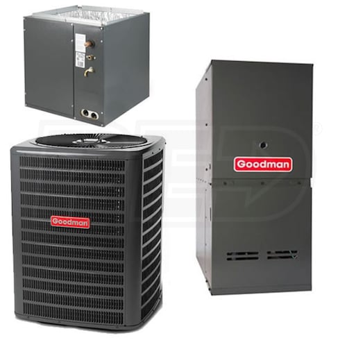 Goodman - 4.0 Ton Cooling - 80k BTU/Hr Heating - Air Conditioner + Multi-Speed Furnace Kit - 14.0 SEER - 80% AFUE - For Downflow Installation