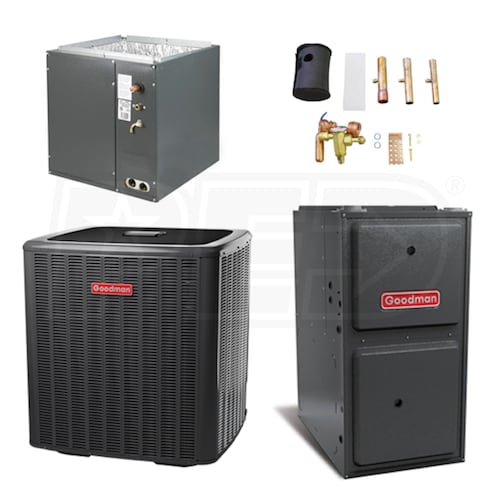 Goodman - 2.0 Ton Cooling - 40k BTU/Hr Heating - Air Conditioner + 2-Stage Furnace Kit - 16.0 SEER - 96% AFUE - For Upflow Installation