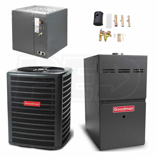 Goodman - 2.0 Ton Cooling - 60k BTU/Hr Heating - Heat Pump + Furnace Kit - 14.0 SEER - 80% AFUE - For Upflow Installation