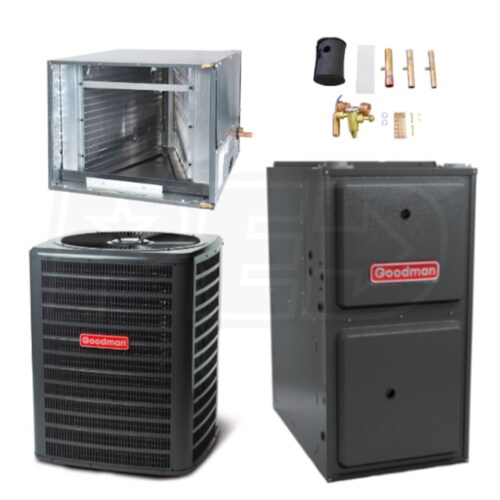 A Goodman heat pump and furnace package is the perfect way to upgrade your home's HVAC system. This kit contains a GSZ heat pump with an advanced coil design to maximize efficiency. The heat pump is paired with a single stage GMES96 furnace equipped with an ECM multi-speed motor. This pair was specifically chosen to provide high efficiency comfort, year round. A cased coil and valve kit are included, making this kit an affordable, efficient, whole home solution.