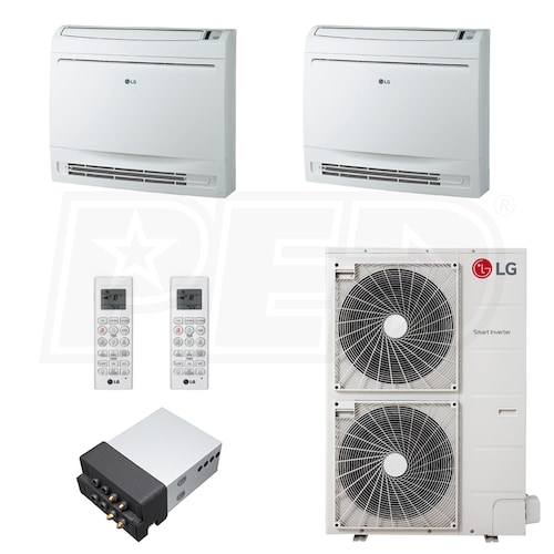 LG Low Wall Console Ductless Mini Split LGRED° Heat Pump System - 2-Zone - 36k BTU Outdoor - 15k + 15k Indoor - 22.0 SEER2 - R-32