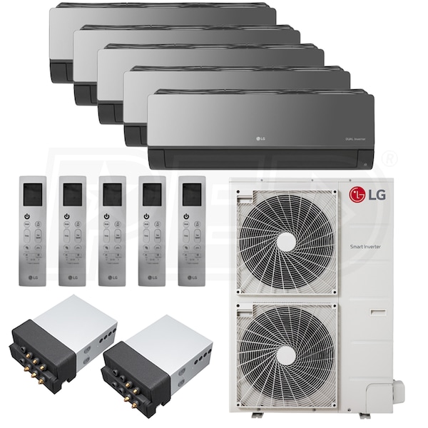 LG Art Cool Mirror Ductless Mini Split LGRED° Heat Pump System - 5-Zone - 36k BTU Outdoor - 9k + 9k + 9k + 9k + 9k Indoor - 22.0 SEER2 - R-32