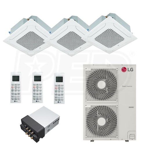 LG Ceiling Cassette Mini Split Heat Pump System - 3-Zone - 54k BTU Outdoor - 9k + 18k + 18k Indoor - 20.6 SEER2 - R-32