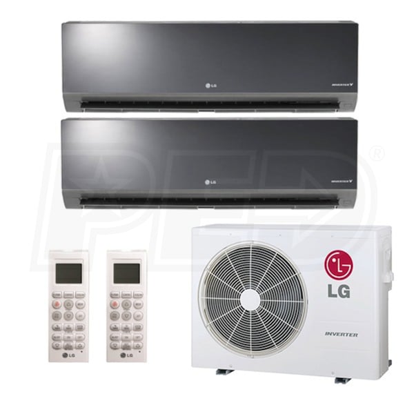 LG Art Cool Mirror Wall Mounted 2-Zone System - 18,000 BTU Outdoor - 9k + 9k Indoor - 22.5 SEER2