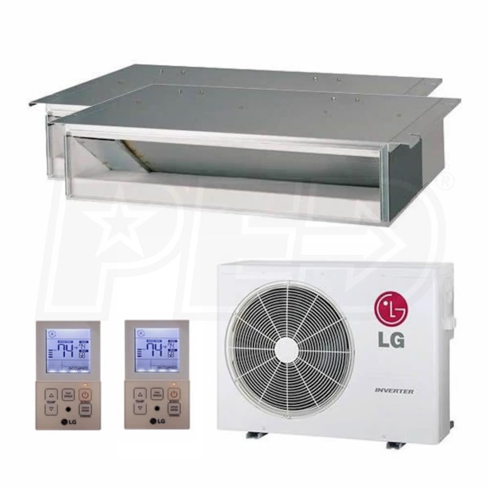 LG Concealed Duct 2-Zone System - 18,000 BTU Outdoor - 9k + 12k Indoor - 18.5 SEER2