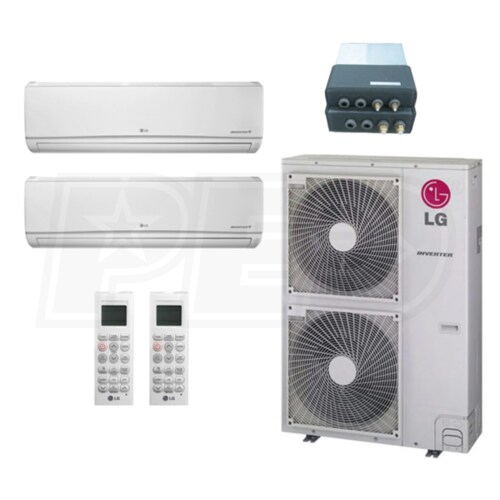 LG Wall Mounted 2-Zone LGRED° Heat System - 36,000 BTU Outdoor - 12k + 24k Indoor - 22.0 SEER2