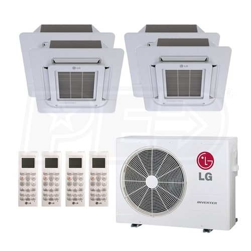 LG Ceiling Cassette 4-Zone System - 36,000 BTU Outdoor - 9k + 9k + 12k + 12k Indoor - 21.5 SEER2