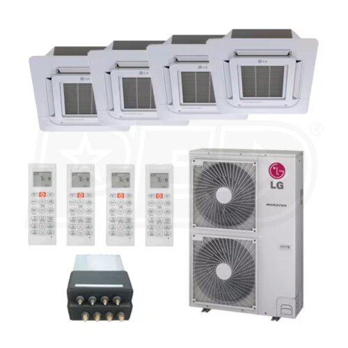 LG Ceiling Cassette 4-Zone System - 54,000 BTU Outdoor - 9k + 9k + 12k + 18k Indoor - 20.6 SEER2