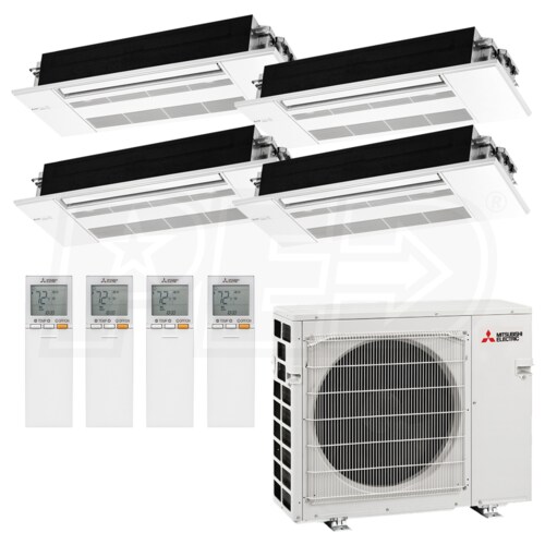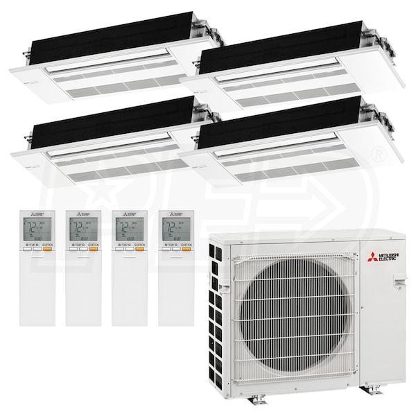 Mitsubishi One-Way Ceiling Cassette 4-Zone System - 36,000 BTU Outdoor - 9k + 9k + 9k + 12k Indoor - 19.2 SEER2