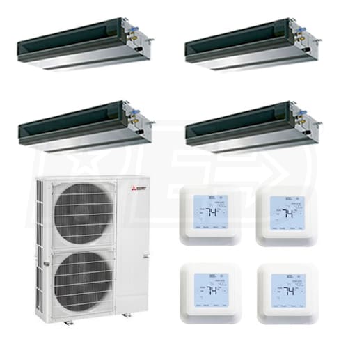 Mitsubishi Concealed Duct 4-Zone System - 48,000 BTU Outdoor - 9k + 12k + 15k + 15k Indoor - 14.7 SEER
