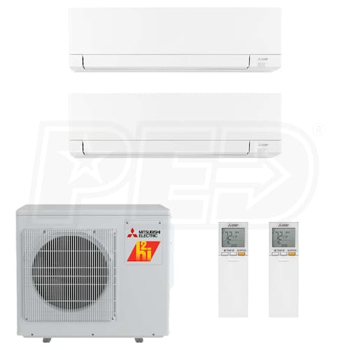 Mitsubishi H2i Ductless Mini Split Heat Pump System - 2-Zone - 20k BTU Outdoor - 9k + 9k Indoor - 19.3 SEER2 - R-454B