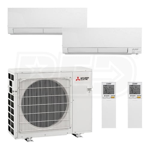 Mitsubishi Wall Mounted 2-Zone System - 24,000 BTU Outdoor - 9k + 15k Indoor - 20.0 SEER2