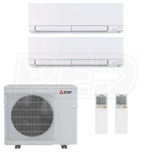 Mitsubishi Ductless Mini Split Heat Pump System - 2-Zone - 24k BTU Outdoor - 12k + 18k Indoor - 20.0 SEER2 - R-454B