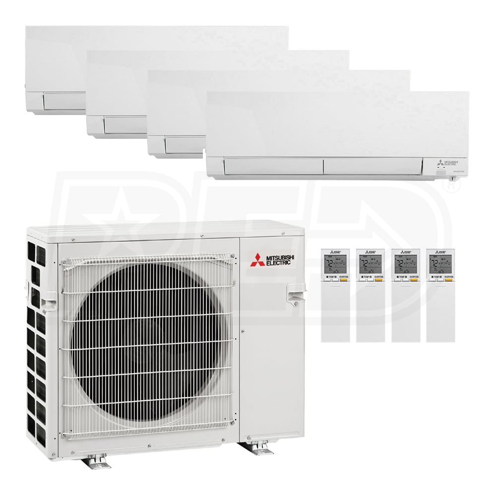 Mitsubishi Wall Mounted 4-Zone System - 36,000 BTU Outdoor - 6k + 6k + 6k + 6k Indoor - 19.2 SEER2