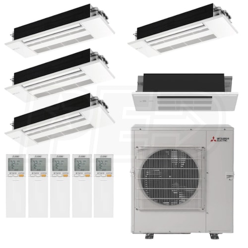 Mitsubishi One-Way Ceiling Cassette 5-Zone System - 42,000 BTU Outdoor - 6k + 12k + 12k + 12k + 12k Indoor - 19.7 SEER2