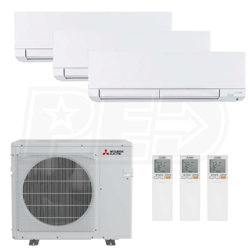 Mitsubishi Ductless Mini Split Heat Pump System - 3-Zone - 36k BTU Outdoor - 6k + 9k + 18k Indoor - 19.2 SEER2 - R-454B