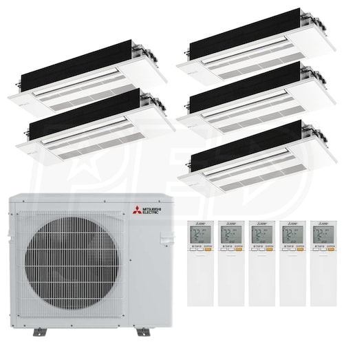 Mitsubishi One-Way Ceiling Cassette Mini Split Heat Pump System - 5-Zone - 42k BTU Outdoor - 9k + 9k + 9k + 9k + 9k Indoor - 19.3 SEER2 - R-454B