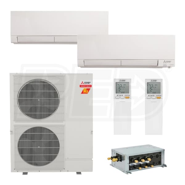 Mitsubishi Wall Mounted 2-Zone H2i System - 36,000 BTU Outdoor - 15k + 15k Indoor - 23.0 SEER2