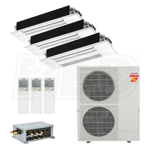 Mitsubishi One-Way Ceiling 3-Zone H2i System - 42,000 BTU Outdoor - 9k + 12k + 18k Indoor - 21.5 SEER2