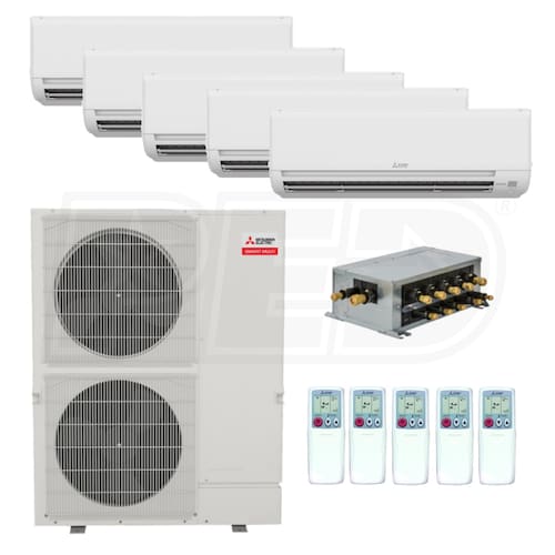 Mitsubishi Wall Mounted 5-Zone System - 48,000 BTU Outdoor - 6k + 6k + 6k + 6k + 15k Indoor - 23.0 SEER2