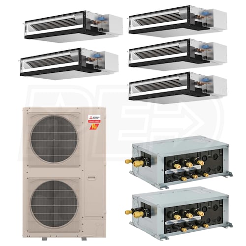 Mitsubishi H2i Concealed Duct Mini Split Heat Pump System - 5-Zone - 48k BTU Outdoor - 9k + 9k + 9k + 12k + 12k Indoor - 18.0 SEER2 - R-454B