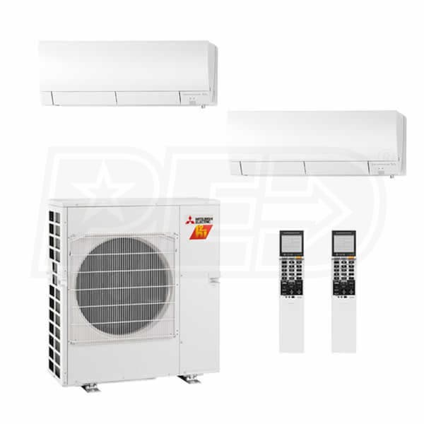 Mitsubishi Wall Mounted 2-Zone System H2i System - 20,000 BTU Outdoor - 6k + 12k Indoor - 17.0 SEER