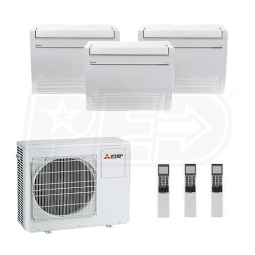 Mitsubishi Floor Mounted 3-Zone System - 36,000 BTU Outdoor - 9k + 18k + 18k Indoor - 19.2 SEER2