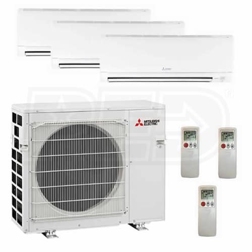 Mitsubishi Wall Mounted 3-Zone System - 36,000 BTU Outdoor - 6k + 9k + 15k Indoor - 19.2 SEER
