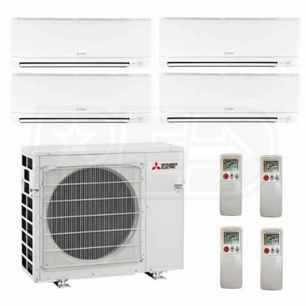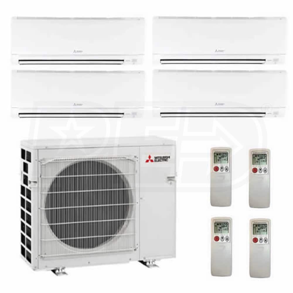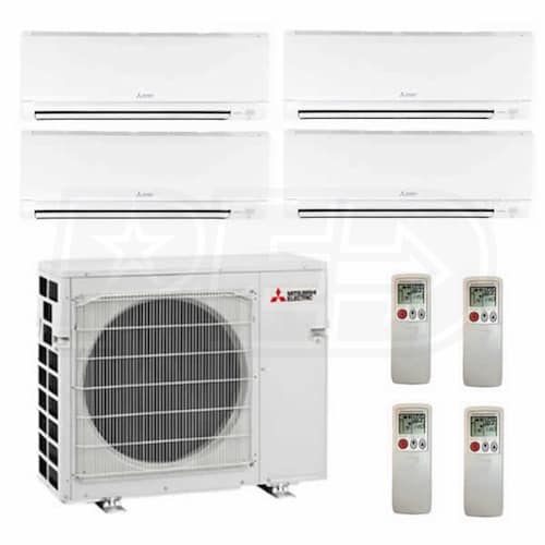 Mitsubishi Wall Mounted 4-Zone System - 36,000 BTU Outdoor - 6k + 6k + 15k + 15k Indoor - 17.6 SEER