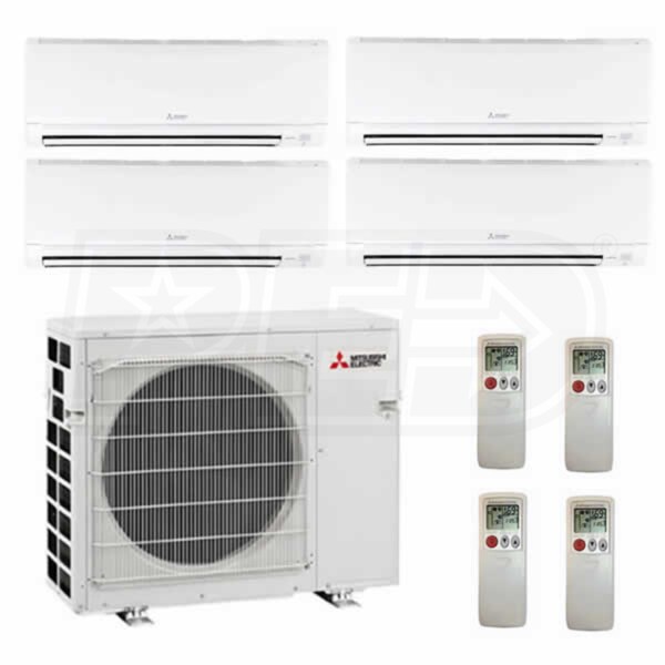 Mitsubishi Wall Mounted 4-Zone System - 36,000 BTU Outdoor - 6k + 9k + 9k + 18k Indoor - 19.2 SEER