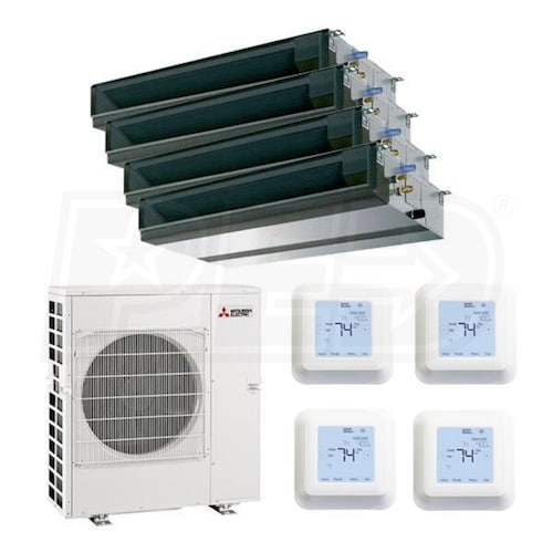 Mitsubishi Concealed Duct 4-Zone System - 42,000 BTU Outdoor - 12k + 12k + 12k + 12k Indoor - 15.2 SEER2