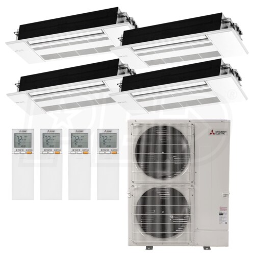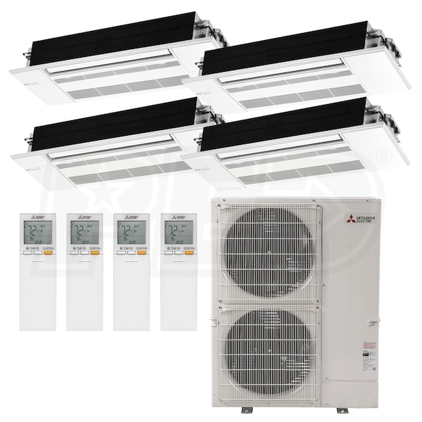Mitsubishi One-Way Ceiling Cassette 4-Zone System - 48,000 BTU Outdoor - 9k + 12k + 12k + 18k Indoor - 16.8 SEER