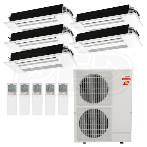 Mitsubishi One-Way Ceiling Cassette 5-Zone H2i System - 48,000 BTU Outdoor - 9k + 9k + 12k + 12k + 12k Indoor - 18.9 SEER