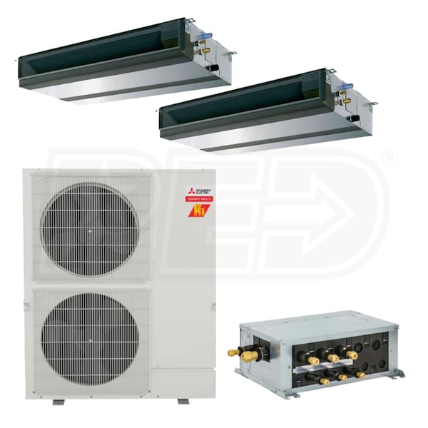 Mitsubishi Concealed Duct 2-Zone H2i System - 36,000 BTU Outdoor - 15k + 15k Indoor - 18.5 SEER2